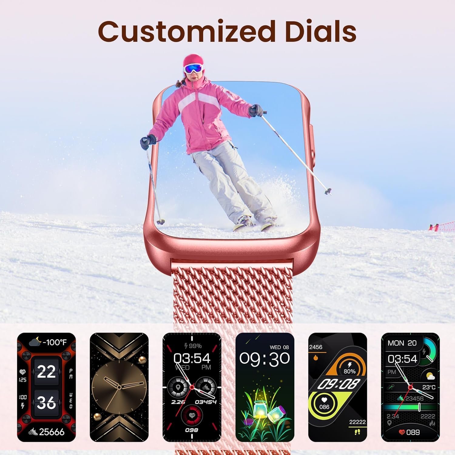 The rich watch face function enhances the practicality and personalization of the smart watch, which can meet the needs and preferences of different users. Also users can set their photos as dials.