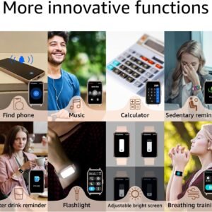 【Your Personal Life Assistant】The smart watch fitness tracker is equipped with rich functions, such as Weather Forecasts, Stopwatch, Timer, Music Control, Brightness Adjustment, Flashlight, Find Phone, Alarm clock, Camera Control, Calculator, Dringking Water Reminder, Sedentary Reminder, Don’t Disturb Mode. These functions can make your life convenient and joyful.