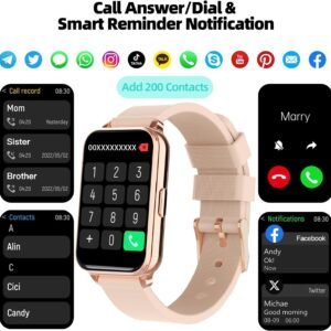 【Make and Answer Phone Calls】 The fitness tracker watch is featured advanced Bluetooth call functionality, you can effortlessly make and answer calls directly from your wrist, keeping you connected while on the go. Stay updated with instant notification alerts for messages, ensuring you never miss an important communication during your workouts or busy days.