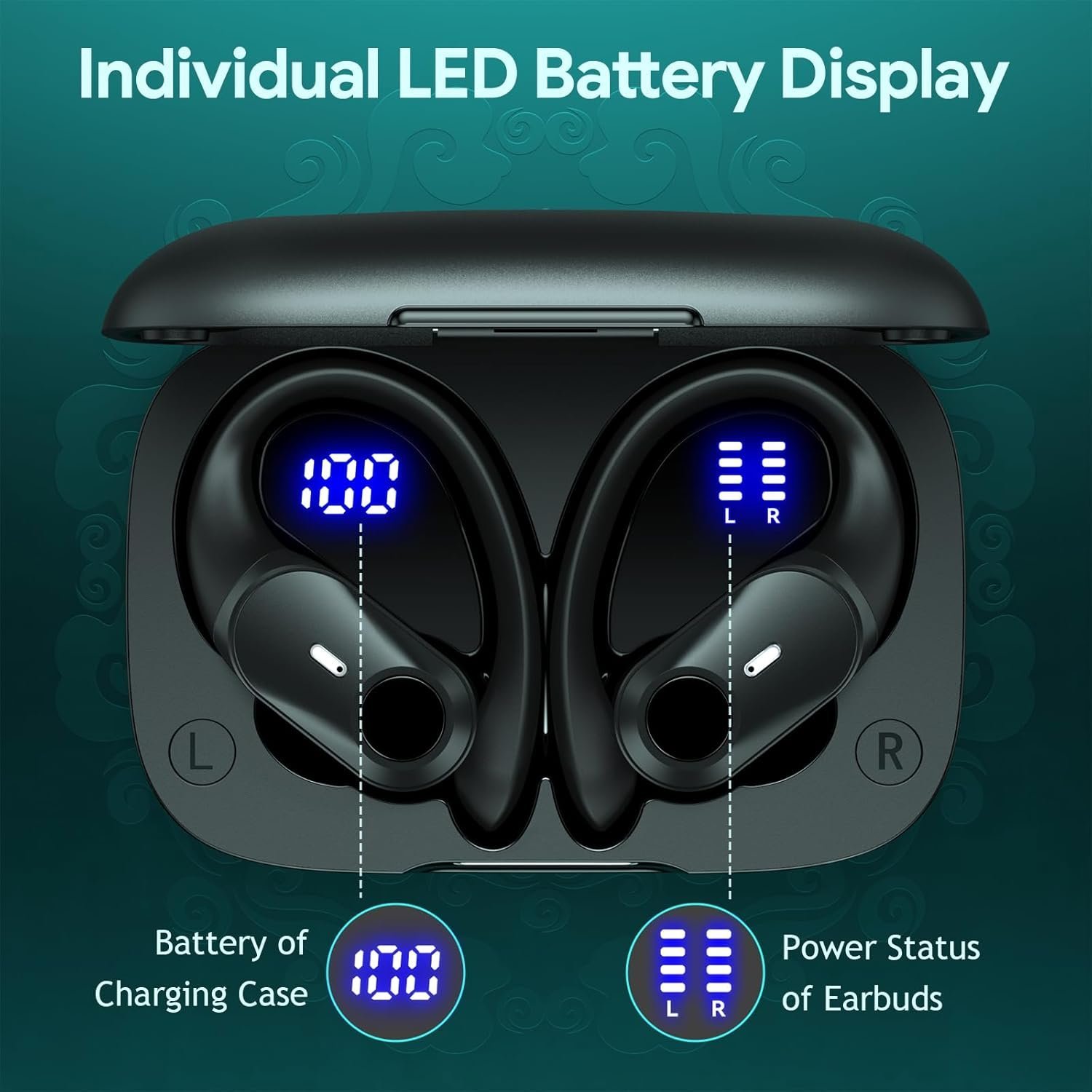 Ear Buds 36Hrs Playback Wireless Charging Case Digital Display Over-Ear Earphones with EarhookEar Buds 36Hrs Playback Wireless Charging Case Digital Display Over-Ear Earphones with Earhook