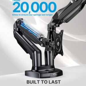 Comfort Is Fundamental – Our dual monitor arm for desk raises monitors to eye level, improving posture, relieving strain on neck & shoulders while increasing productivity levels.Height adjustable, full motion design lets you work in a more comfortable ergonomic position.