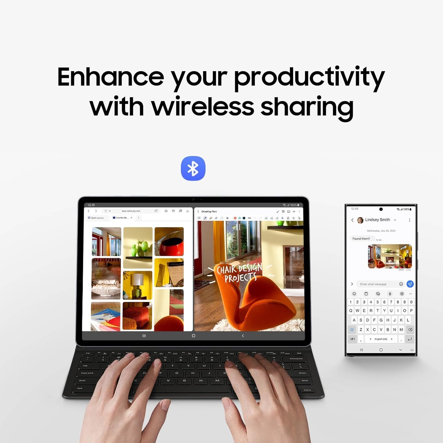 ENHANCE YOUR PRODUCTIVITY: With Wireless Keyboard Sharing, you can connect to compatible Galaxy devices and type or navigate on them with ease.⁵ It’s like seamlessly switching to your phone and using it the same way as you would your tablet.⁶