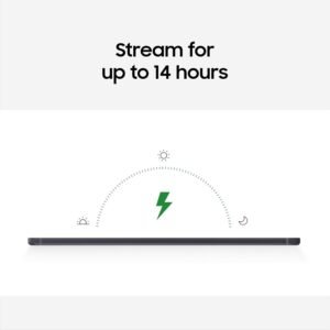 ¹Based on local, 720p resolution video playback, default video player (full screen), 162 nit brightness, earbud volume 7, Wi-Fi and mobile network off. Results vary with settings, usage and other factors. ²MicroSD card sold separately. ³Quick Share between Galaxy devices available with the following OS: smartphones and tablets with Android OS version 10.0 (Q) and One UI 2.1 or above, PCs running Windows 10 or later. Requires Samsung account and Wi-Fi and Bluetooth connection. Quick Share to iOS and Android devices available by sending shared link: individual files shared cannot exceed 3GB (for a total of 5GB per day) and link will expire after two days; requires a Samsung account and internet connection. ⁴Book Cover sold separately.