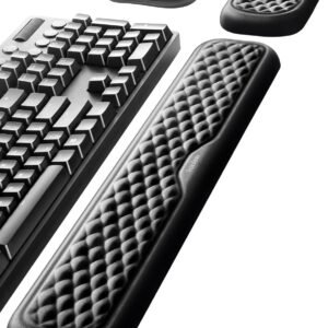【Ergonomic Wrist Saver】The wrist rests for keyboard and mouse comes with a 17.32×3.15×0.83 inch keyboard wrist pad and a 5.94×3.15×0.83 inch mouse wrist support. Based on ergonomic design, the unique concave shape is the perfect fit for your wrist joints. The wrist rest pad fits most computer keyboards and laptops, improve hand and wrist posture, release your wrist and arm stress.
