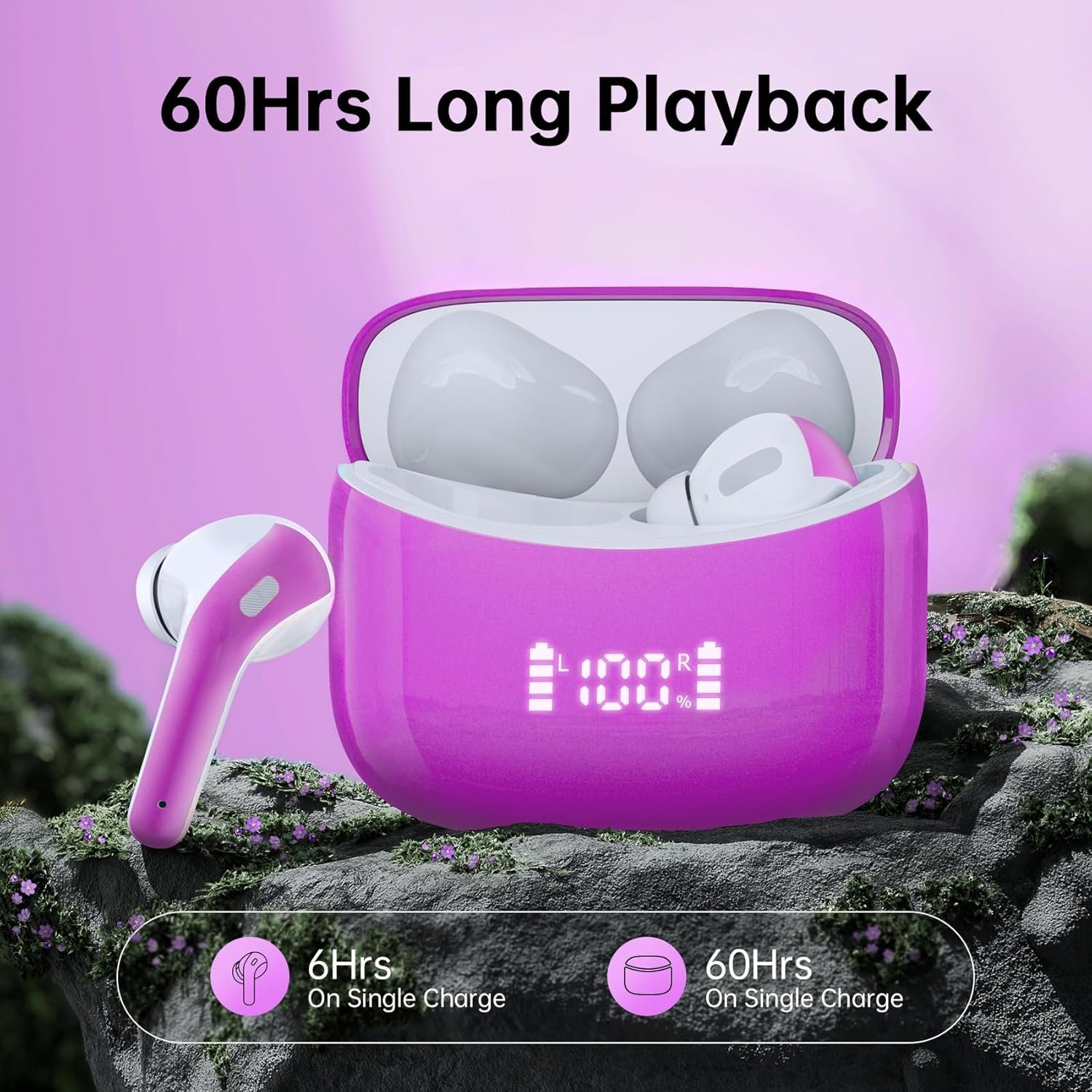 LED Power Display & All Day Use: The charging case features an LED display that shows the battery level of both the case and the ear buds, allowing you to easily monitor charge status while on the go. With a simple tap on the noise cancelling earbuds, you can skip songs, play/pause music, answer or hang up calls —without ever needing to take out your phone. The ear buds noise cancelling bluetooth earbuds offer 6 hours of playtime per charge, with the charging case providing a total of 60 hours.